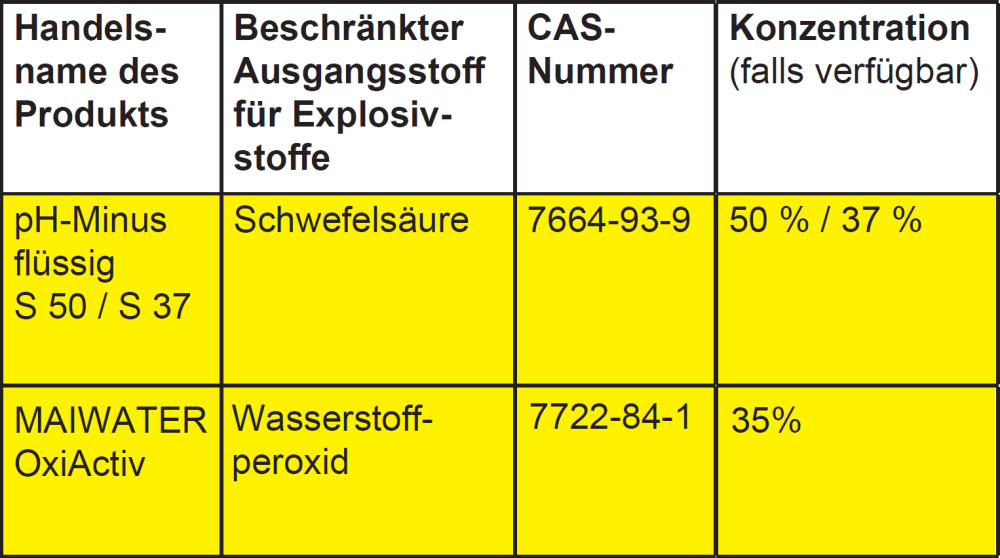dass wir Ihnen ohne diese Erklärung Produkte, die Ausgangsstoffe für Explosivstoffe enthalten seit Februar 2021 nicht mehr verkaufen und liefern dürfen!